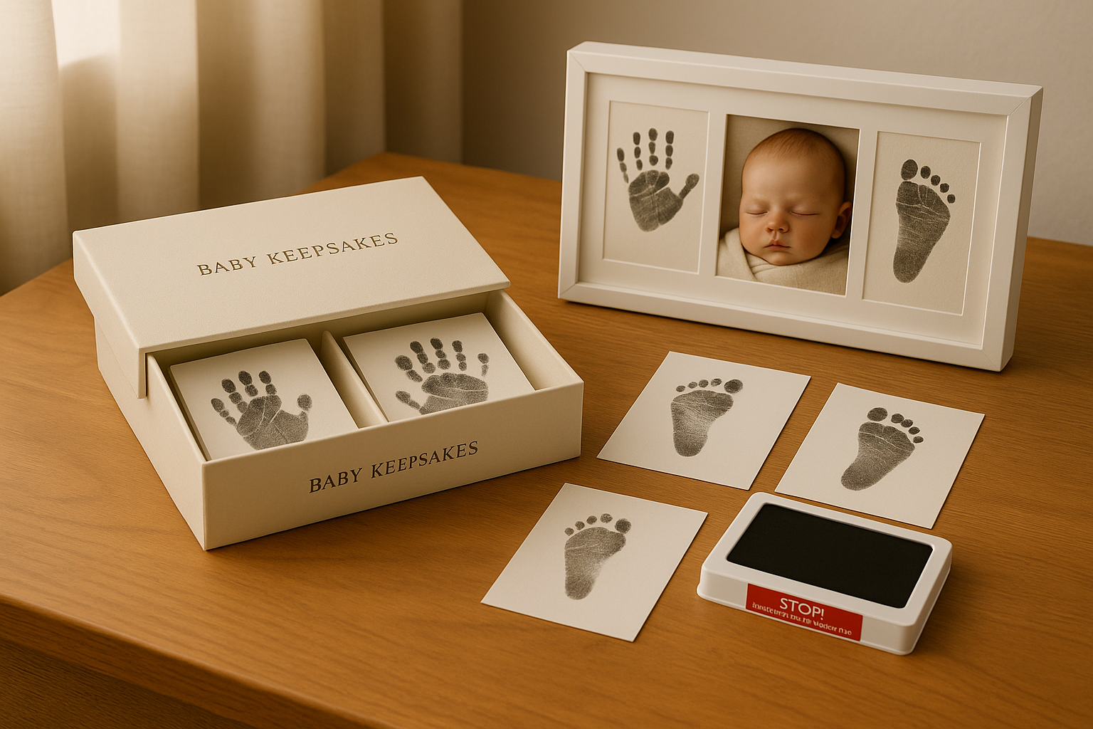 Try to capture prints when your baby is calm, sleepy, or after feeding. Have a helper gently hold the hand or foot, lay the card flat, and press the pad evenly for 1–2 seconds. A quick practice on a spare card also helps!